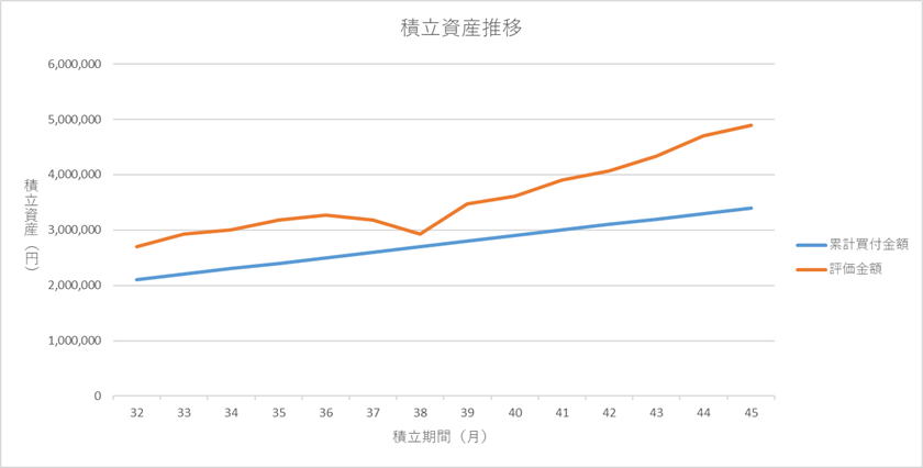 | 43ヶ月目(2025/9/14) | 320万円 | 4,328,857円 | +1,128,857円(+35.28%) |