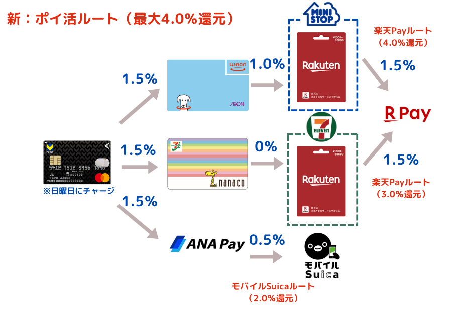 2025/12/1より、以下の新ポイ活ルートで最大4.0%の還元率を獲得しながら、生活費を支払っていきましょう!